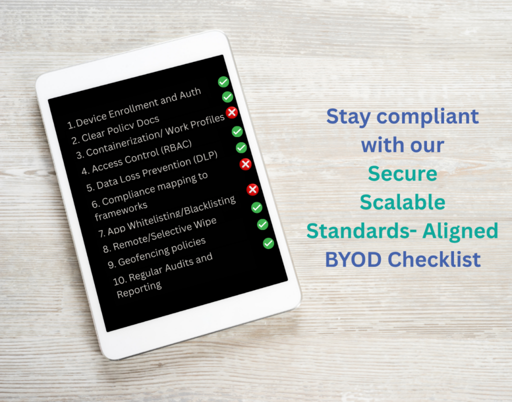 Whether you’re launching a new BYOD program or auditing an existing one, this 10-point checklist will help you assess your organization’s readiness and align with compliance standards like HIPAA, ISO 27001, GDPR, and NIST.